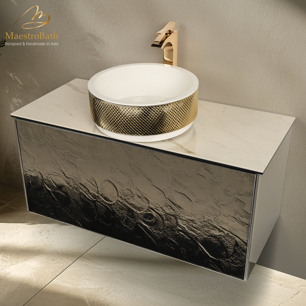 Luxury 40" Murano Crystal Wallmount Bathroom Vanity | Bronze