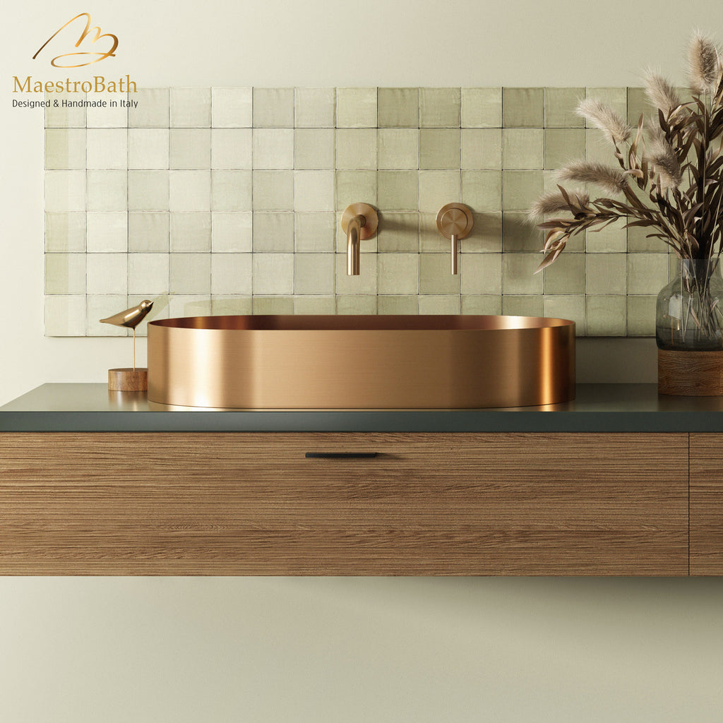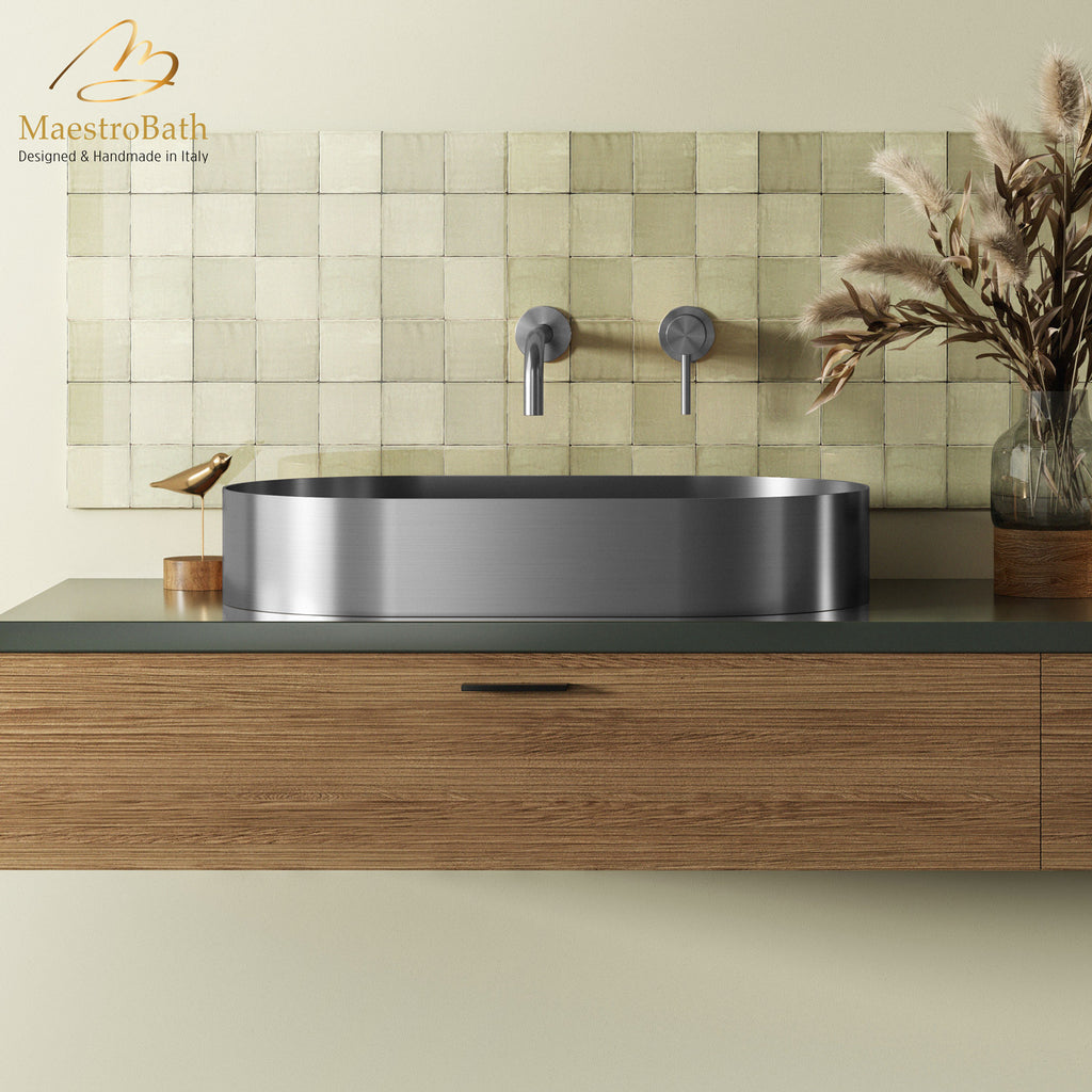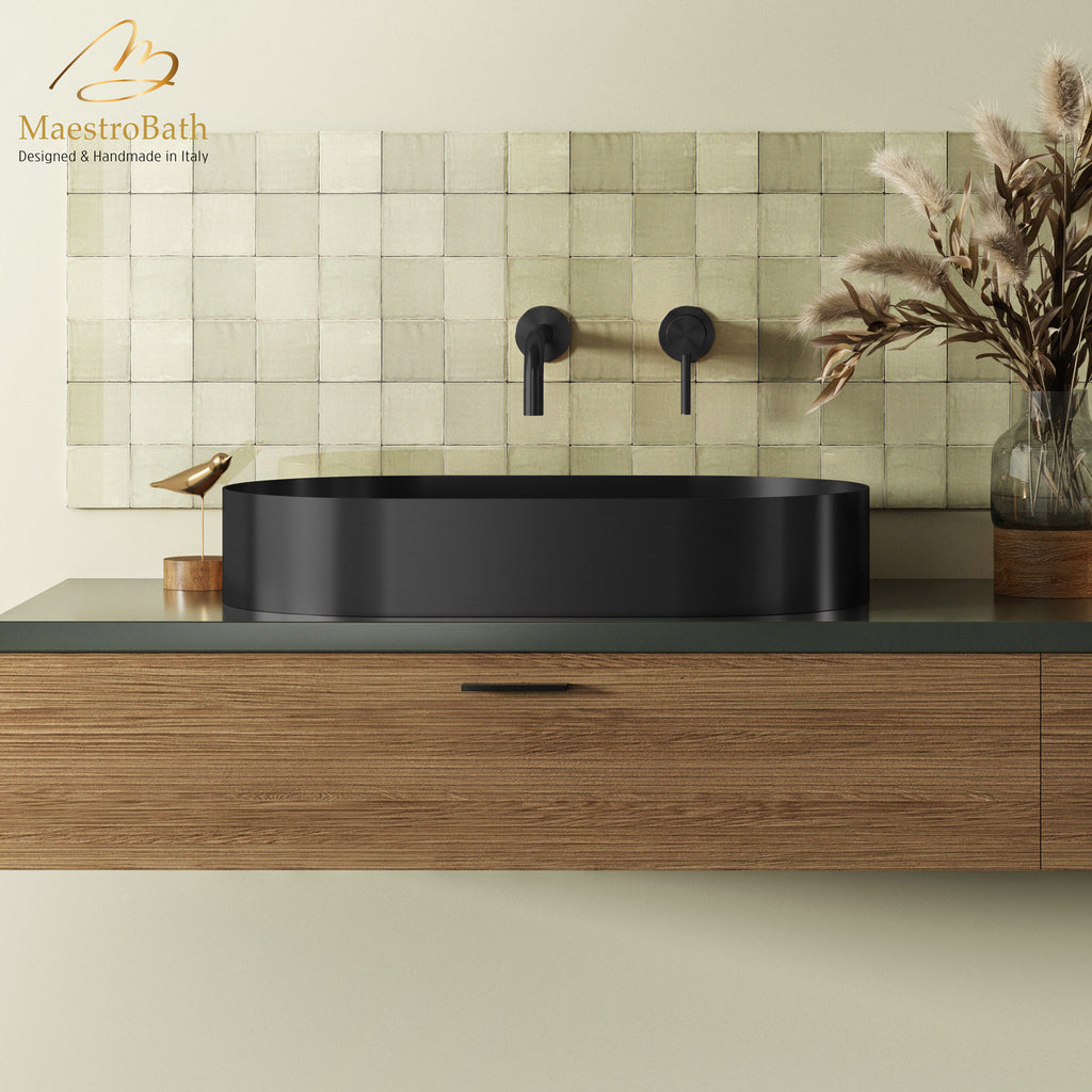 The Modern Oval Vessel Sink from Maestro Bath is a stunning addition to any bathroom. Its sleek and contemporary design adds a touch of elegance and sophistication to your space. Crafted from high-quality ceramic, this vessel sink is built to last. The smooth and glossy surface enhances its aesthetic appeal and makes it easy to clean and maintain. The oval shape offers a modern twist on a classic design, creating a visually pleasing focal point in your bathroom. Its generous size provides ample space for washing and adds convenience to your daily routine. Installation is simple and hassle-free, allowing you to enjoy your new sink in no time. Whether you mount it on a countertop or a vanity, it seamlessly integrates into your bathroom decor. The Modern Oval Vessel Sink is not only functional but also a statement piece that elevates the overall look of your bathroom. Its versatility ensures it complements various styles, from contemporary to transitional. Upgrade your bathroom with the Modern Oval Vessel Sink and experience the perfect blend of style, quality, and functionality. It's a must-have for those seeking a modern and luxurious touch in their bathroom design.